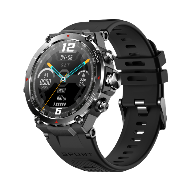 ساعة فيهو كوزو F1-S الذكية متينة وقوية، مصممة للمغامرات والرياضة والأنشطة الخارجية، مزودة بشاشة لمس AMOLED ونظام تحديد المواقع العالمي (GPS) مدمج. تتميز ساعة كوزو F1-S الذكية بتصميمها الأنيق والعصري، وتزخر بميزات رائعة. شاشتها AMOLED مقاس 1.3 بوصة توفر ألوانًا زاهية، بينما يضمن تصميمها خفيف الوزن والمتين ارتداءً مريحًا في أي بيئة. بفضل إمكانياتها الشاملة لتتبع الصحة، بما في ذلك مراقبة معدل ضربات القلب، ومستويات الأكسجين في الدم، وتحليل النوم، تساعدك F1-S على اتخاذ قرارات مدروسة بشأن نمط حياتك. ابقَ على اتصال دائم مع الإشعارات الذكية للمكالمات والرسائل وتنبيهات وسائل التواصل الاجتماعي. تتيح لك الواجهة البديهية للساعة التحكم في تشغيل الموسيقى وإدارة التنبيهات. بفضل تصنيف IP68 لمقاومة الماء والغبار، فهو مثالي للتمرينات والمغامرات الخارجية. أضفِ لمسةً شخصيةً على أسلوبك مع واجهات ساعات قابلة للتخصيص وحامل حزام عالمي. ساعة Kuzo F1-S هي المزيج الأمثل بين الأناقة والعملية؛ ابقَ على اتصال، ونشطًا، وأنيقًا.